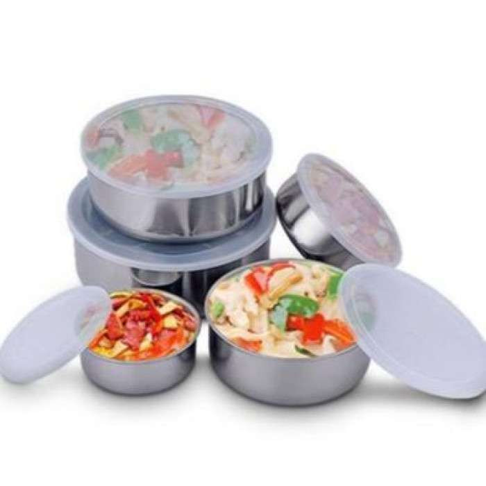 ঢাকনা সহ 5 পিসি স্টেইনলেস স্টিলের ফ্রেশ বক্স • টেকসই অ্যালুমিনিয়াম উপাদান • রান্নাঘর স্টোরেএবং লাঞ্চের জন্য আদর্শ • বহুমুখী এবং সতেজতা রক্ষা করে • যেতে যেতে খাবারের জন্য উপযুক্ত.